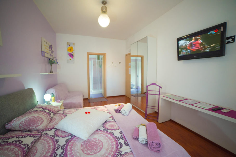 La camera lilla è la stanza dell’energia, della spiritualità, dell’ ispirazione, e aiuta ad eliminare lo stress e la tensione. E’ perfetta per coppie o famiglie, comprende un letto matrimoniale ed un divano letto. L’ampiezza della stanza permette di ospitare comodamente fino ad un massimo di quattro persone.