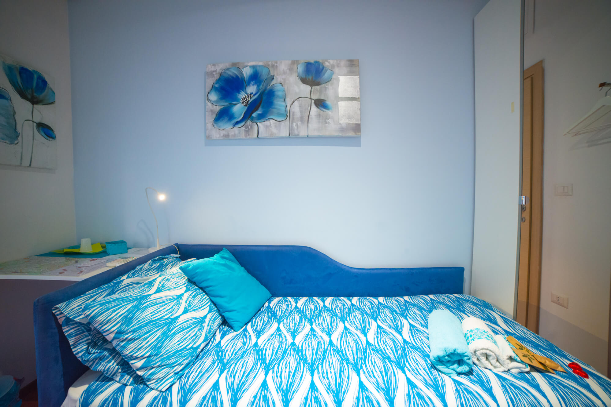La camera lilla è la stanza dell’energia, della spiritualità, dell’ ispirazione, e aiuta ad eliminare lo stress e la tensione. E’ perfetta per coppie o famiglie, comprende un letto matrimoniale ed un divano letto. L’ampiezza della stanza permette di ospitare comodamente fino ad un massimo di quattro persone.